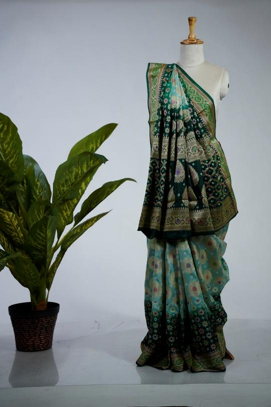 Banarasi Bandhej Bandhani Saree with Blouse