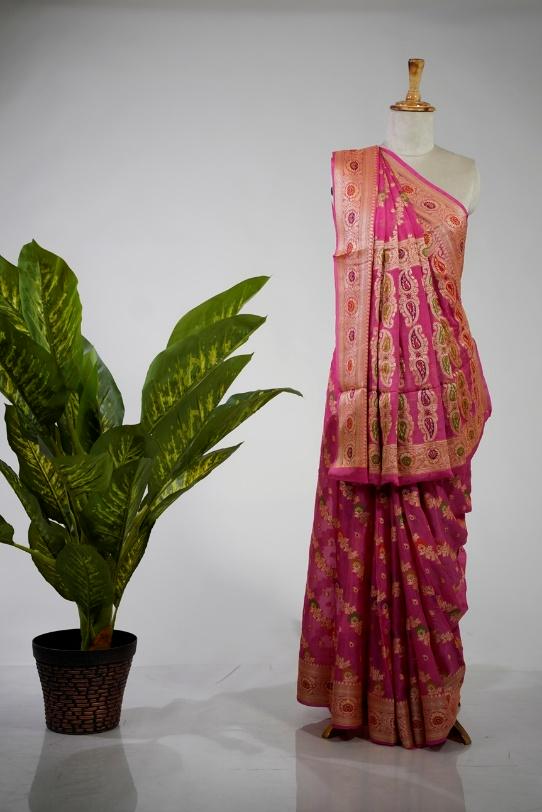 Banarasi Bandhej Bandhani Saree with Blouse Pink
