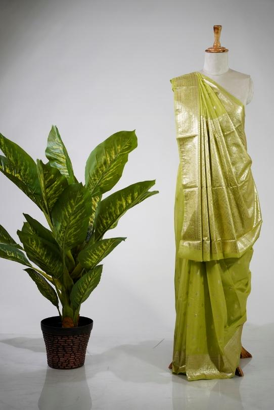 Perfect for weddings, festivals, and special occasions, this Banarasi saree effortlessly blends traditional craftsmanship with modern sophistication. Its rich color palette and delicate golden border make it a must-have addition to every woman’s ethnic wardrobe.